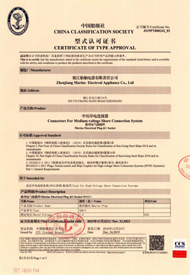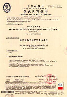 中压岸电连接器(船用插座、船用插头)型式认可证书