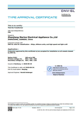 船用变压器型式认可证书