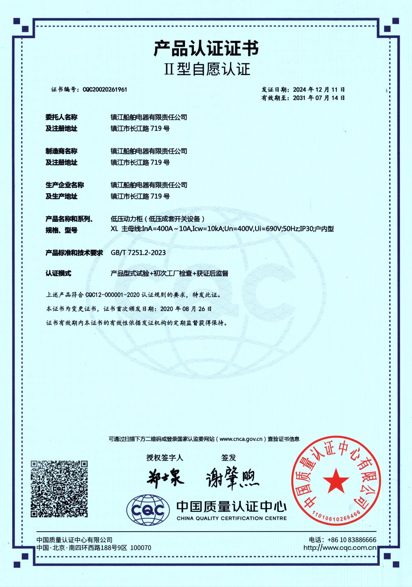 CQC产品认证-Ⅱ型(低压动力柜)